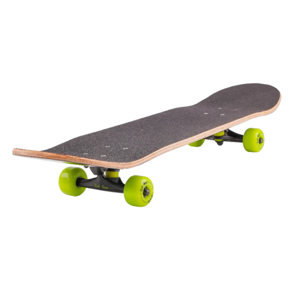 ДЕРЕВЯННЫЙ СКЕЙТБОРД TECH TEAM BAD BOY 2020 занимает лидирующие позиции в сегменте продаж. Классический вариант скейтборда понравился простотой пользования и надежности. Верхняя часть скейтборда – деревянная, также имеются элементы прочного алюминия. Сочетание салатового цвета с элементами дерева делает доску современной и заметной на фоне других участников движения.