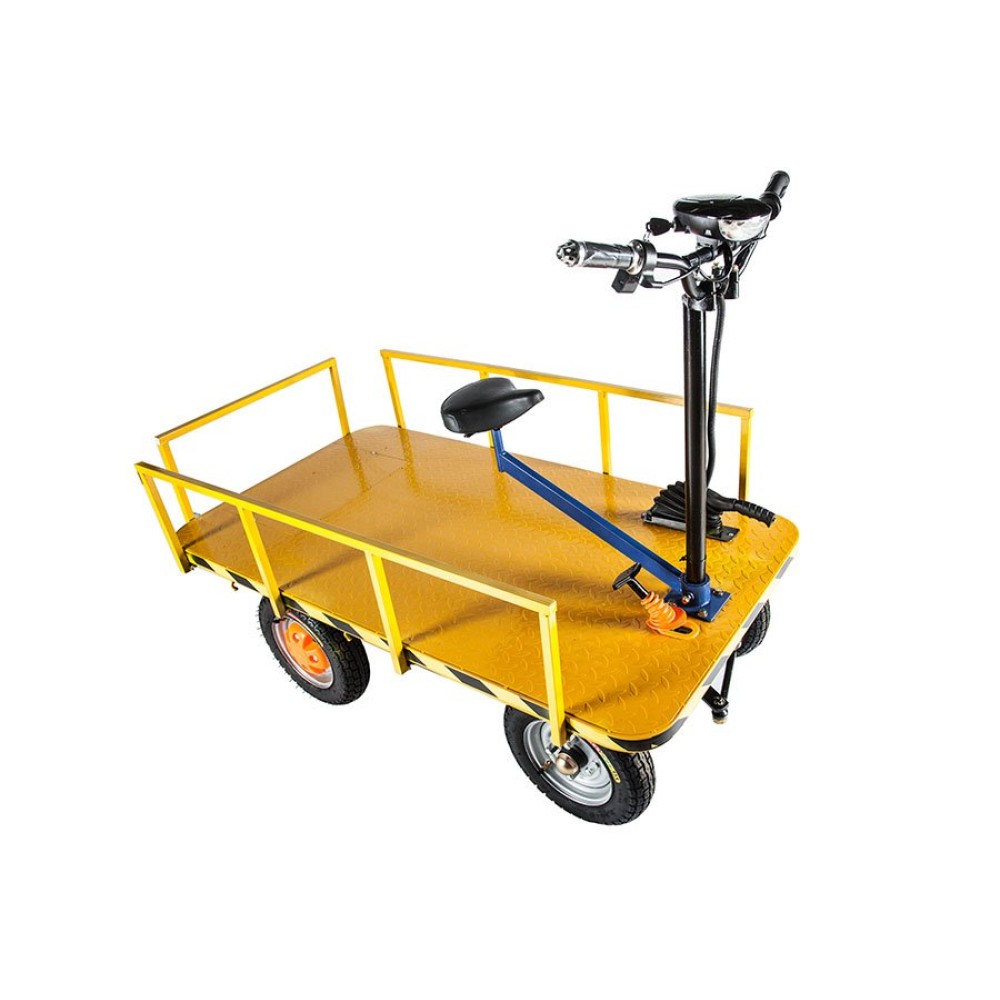 При мощности двигателя 800 ВТ техника способна развивать скорость до 25 км/час. Грузоподъемность электротранспорта составляет 750 кг. Модель оформлена порошковой краской желтого цвета, длительное время не теряющей первоначальные характеристики. Тормозная системы – качественная, барабанная. Эксплуатационные характеристики позволяют пользоваться техникой при температурных параметрах -10С до +50С. Техника изготовлена из прочной стальной рамы, которая неоднократно подтвердила максимальные параметры надежности. Для заказа товара оптом и в розницу предлагаем связаться с менеджером интернет-магазина в телефонном или онлайн-режиме.