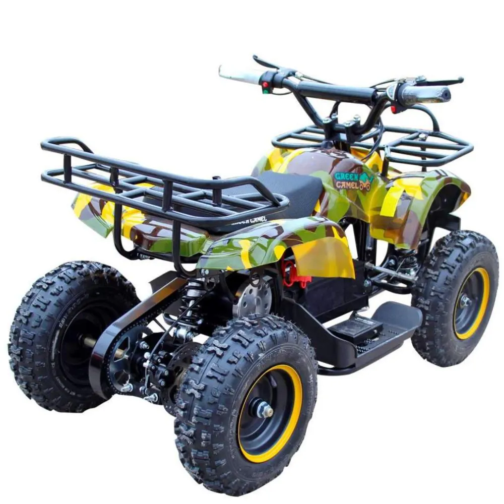 GreenCamel Gobi K200 Армейский желтый – это великолепный квадроцикл подходящий для детей в возрастном диапазоне от трёх до семи лет. Он способен выдержать вес до шестидесяти килограмм. Снабжён дисковыми механическими тормозами, которые установлены на все колёса. GreenCamel Gobi K200 также не страшен дождь – его электроника прекрасно защищена от попадания в неё влаги. Экологически чистый электромтор безопасный для природы и вашего ребёнка, способен разгонять квадроцикл до скорости в 20 км/ч. Подзарядив батарею на сто процентов (потребуется примерно восемь часов) ваш ребёнок сможет проехать на квадроцикле до двадцати километров.