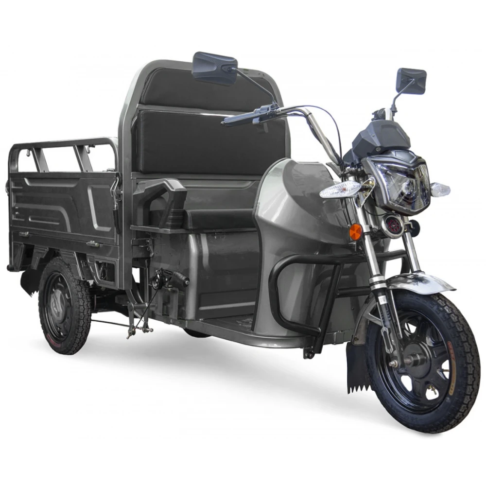 Использование высококачественного покрытия делает электротрицикл неуязвимым перед различными деформациями и повреждениями. Вилка и рулевая часть изготовлены из прочного металла. Пробег до 50 км на одном заряде допускается благодаря надежному аккумулятору. Главным козырем модели смело можно назвать наличие интеллектуального зарядного устройства. Для большей устойчивости на неровной дороге модель оснащена широкими колесами с протекторами.
