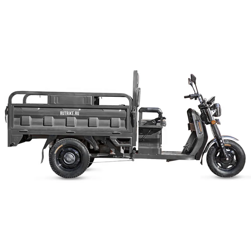 Грузовой электротрицикл Rutrike Маяк 1600 60V1000W в сером цвете - это надежное и эффективное транспортное средство для перевозки грузов. С его мощным 1000-ваттным двигателем, он способен развивать скорость до 25 км/ч, что позволяет быстро доставлять грузы на дальние расстояния.