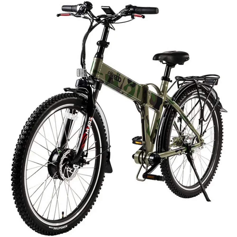Электровелосипед Eltreco Patrol Кардан 28 Nexus 7, зеленого камуфляжного цвета - стильная новинка с алюминиевой рамой (26,5 кг) свободно выдерживает нагрузку в 110 кг. Внешний вид и стильный цвет привлекает внимание сразу. Райдеру понравится складная конструкция, которая хорошо помещается в багажнике автомобиля и не занимает много места при хранении. Тормозная система состоит из дисковых механических передних и задних барабанных тормозов для быстрой и эффективной остановки. Наш интернет-магазин предлагает приятные покупки по ценам от производителя и быструю доставку на выгодных условиях.