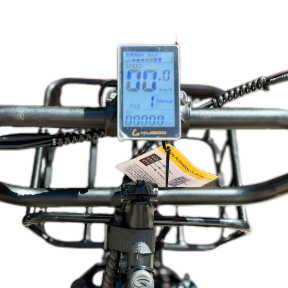LCD с основными показателями скорость, пробег и уровень заряда