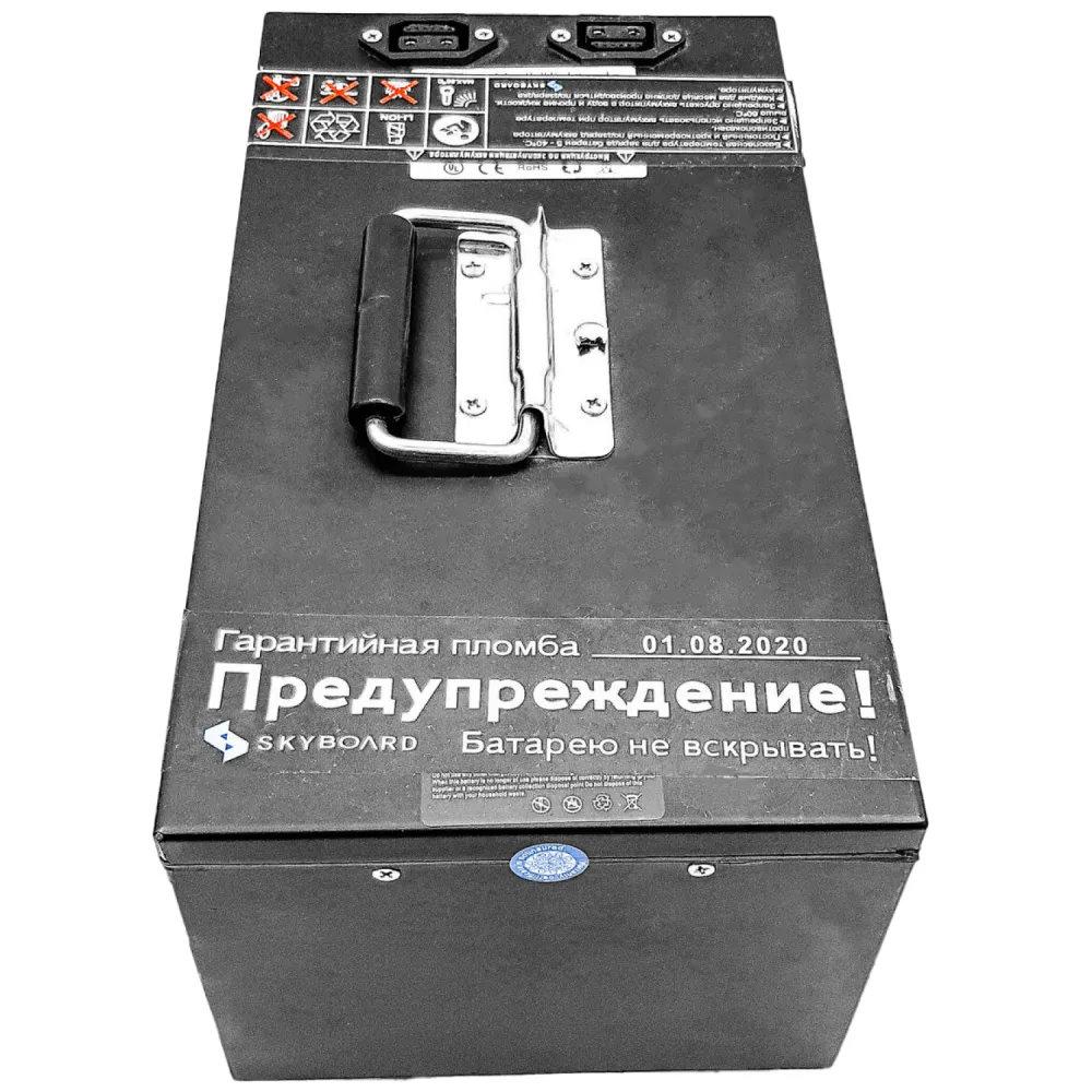 Батарея 45a/h 60v SKYBOARD BR50 – металлическая противоударная конструкция весом  16 кг с удобной ручкой для переноса ожидает своего покупателя. Изделие соответствует требованиям евростандарта, просто в использовании. Из преимущественных характеристик производитель выделяет следующие. Количество циклов зарядки/разрядки – максимальное. Количество ячеек формата – 26800. Изделие оснащено термо-усадочной пленкой, имеет защиту от перегрева и дополнительный предохранитель. Для получения бесплатной консультации и быстрого оформления заказа предлагаем сделать телефонный звонок менеджеру интернет-магазина.